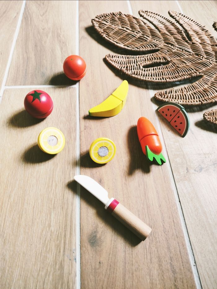 🎀 Offrez à votre enfant ce joli set de fruits et légumes en bois à découper. Idéal pour développer la motricité fine, la coordination œil-main et l'imagination à travers le jeu de la marchande ou de la cuisine.