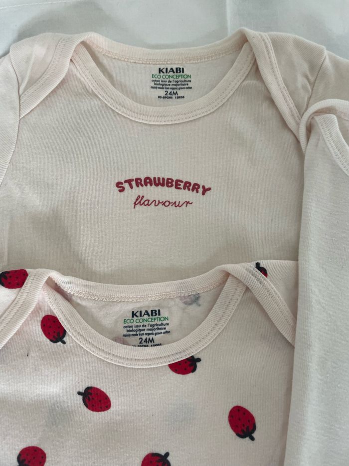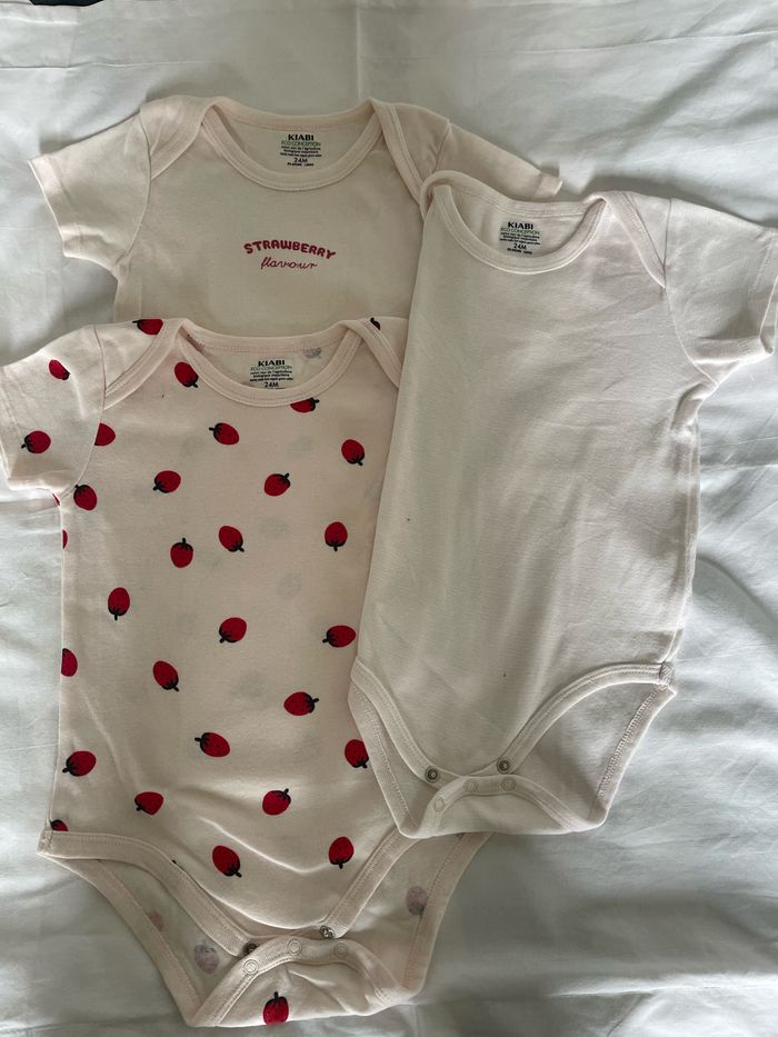 3 bodies manches courtes fond rose 2 ans Kiabi