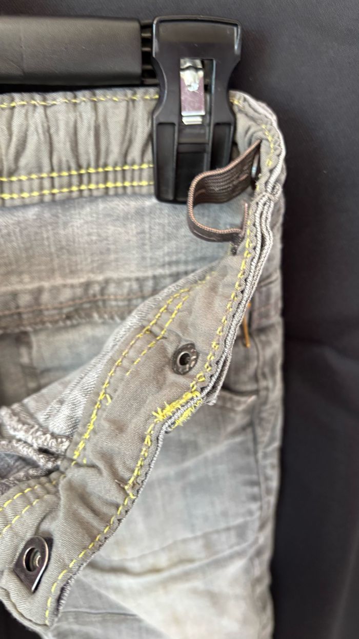 Couleur uni gris avec bouton pression, fermeture éclair et taille ajustable avec élastique