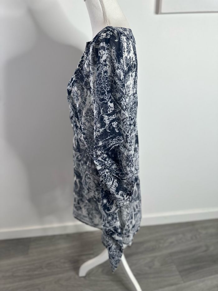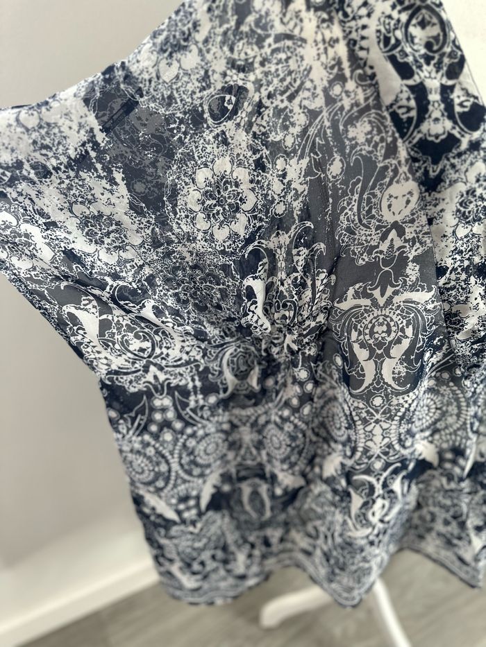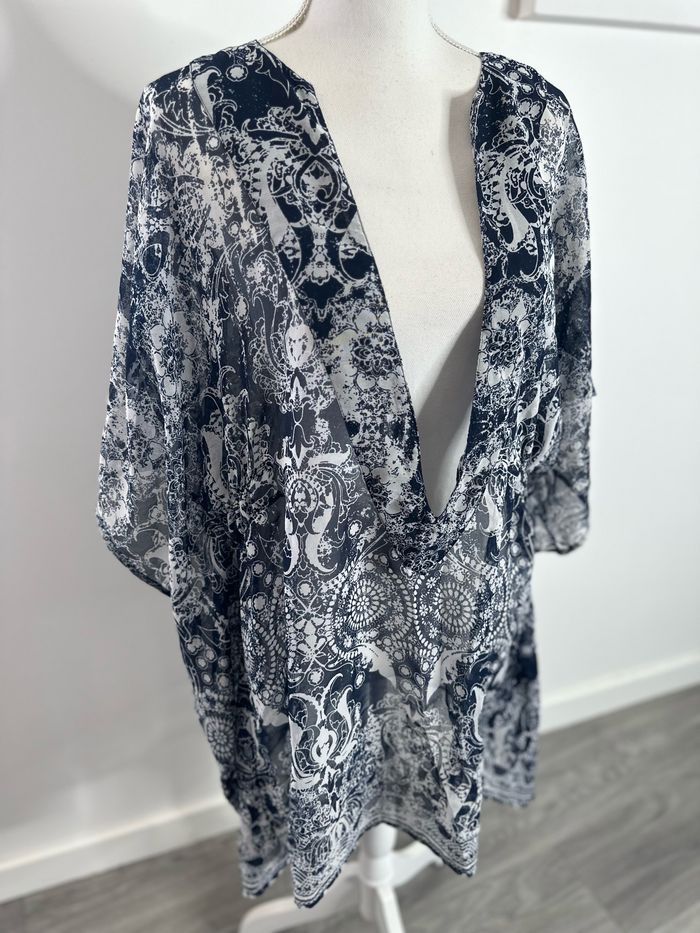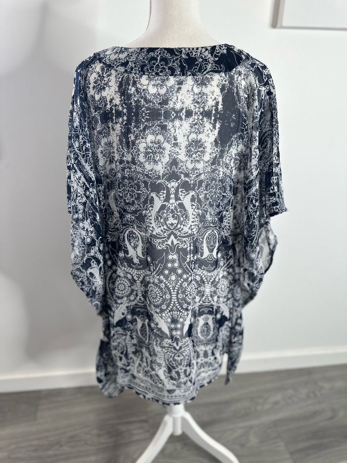 Paréo - Excellent état - Taille unique (ok du 34 à 44) - Bleu marine et blanc - Tissus transparent - Grand décolleté - Manches courtes - Légèrement ajusté à la taille - Pas d’étiquette de taille ni de matière