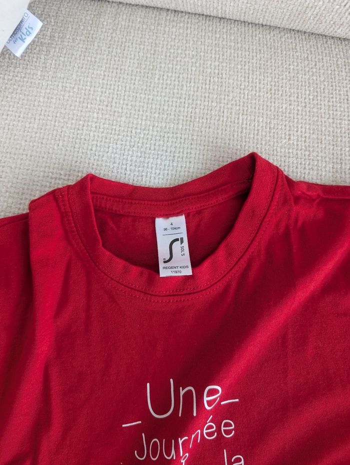 T-shirt rouge "une journée à la mer " Taille 4 ans Très peu porté en parfait état