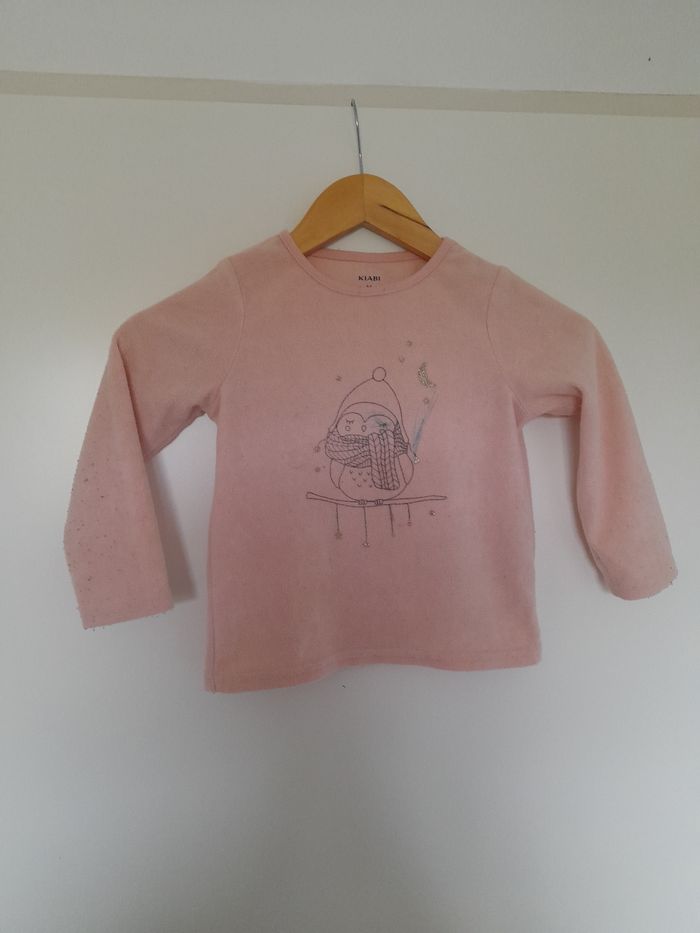 Tissu polaire Col rond Manches longues Couleur : rose Animal : hibou Âge : 4 ans ou 98/107 cm Stylo sur le haut (voir photo)