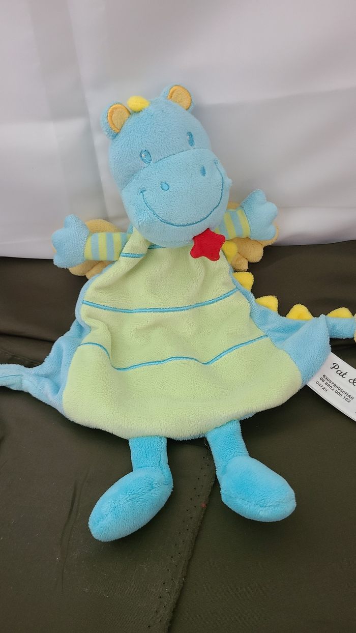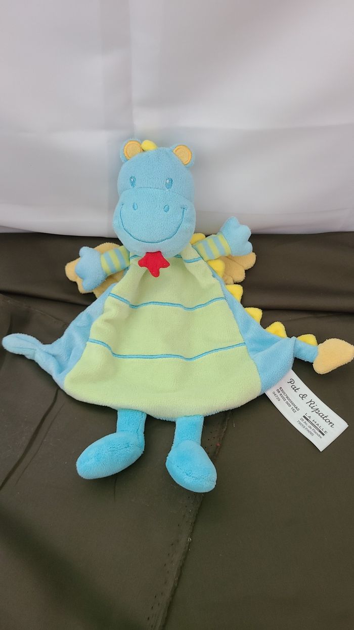 Doudou plat Dragon bleu vert jaune PAT & RIPATON - photo numéro 1