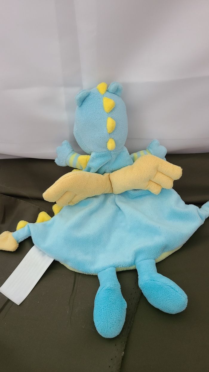 Doudou plat Dragon bleu vert jaune PAT & RIPATON - photo numéro 3