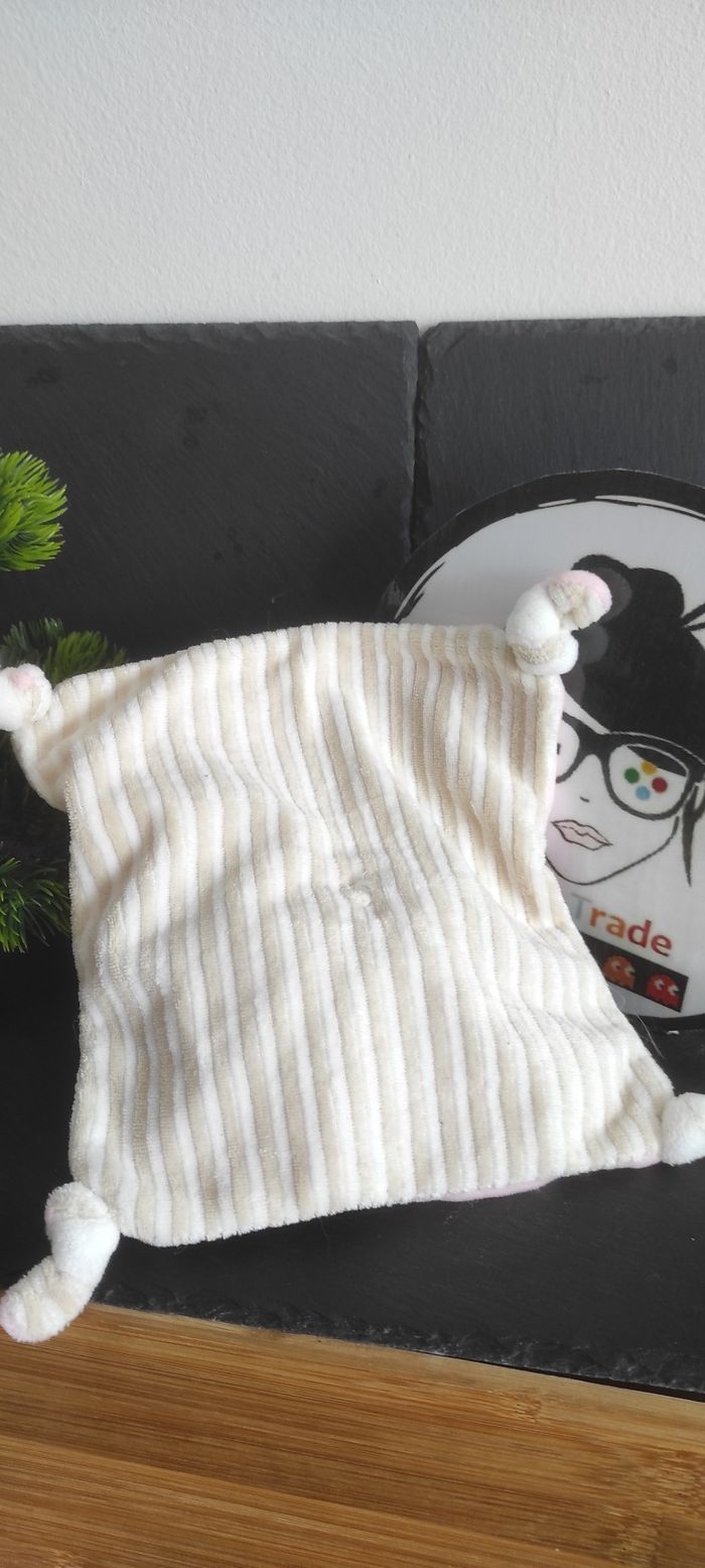 doudou ours mes petits cailloux  marron beige rose blanc rayé rayure noeuds carré - photo numéro 2