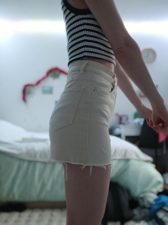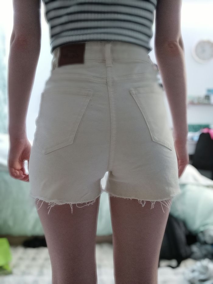 Short court moulant beige en jean taille haute - photo numéro 4