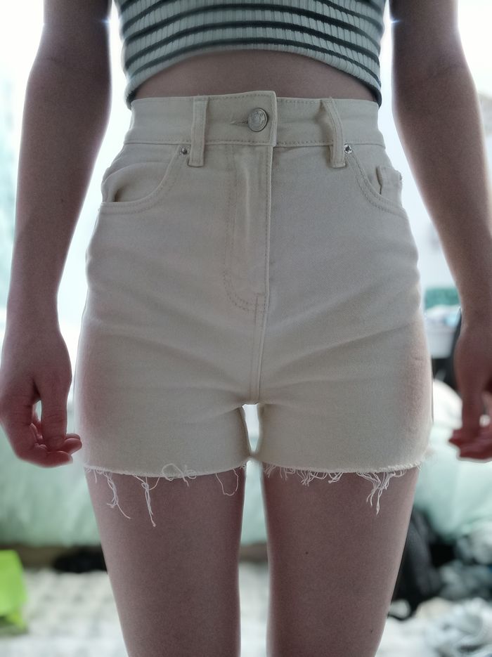 Short court moulant beige en jean taille haute - photo numéro 1