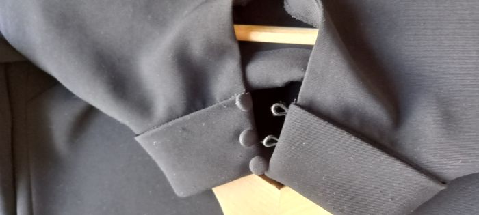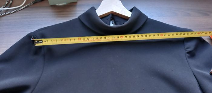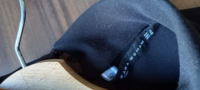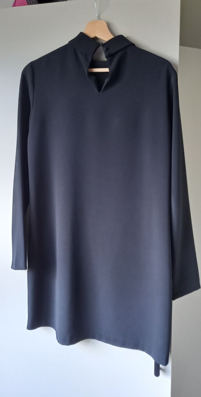 Robe noire Zara Fermé dos par 3 petits boutons Manches longues Petit col montant Forme droite Un peu décousu à l’emmanchure Longueur 82 cm Largeur épaules 36 cm Largeur aisselles 46 cm Taille M / 38 #T38_imoddeco