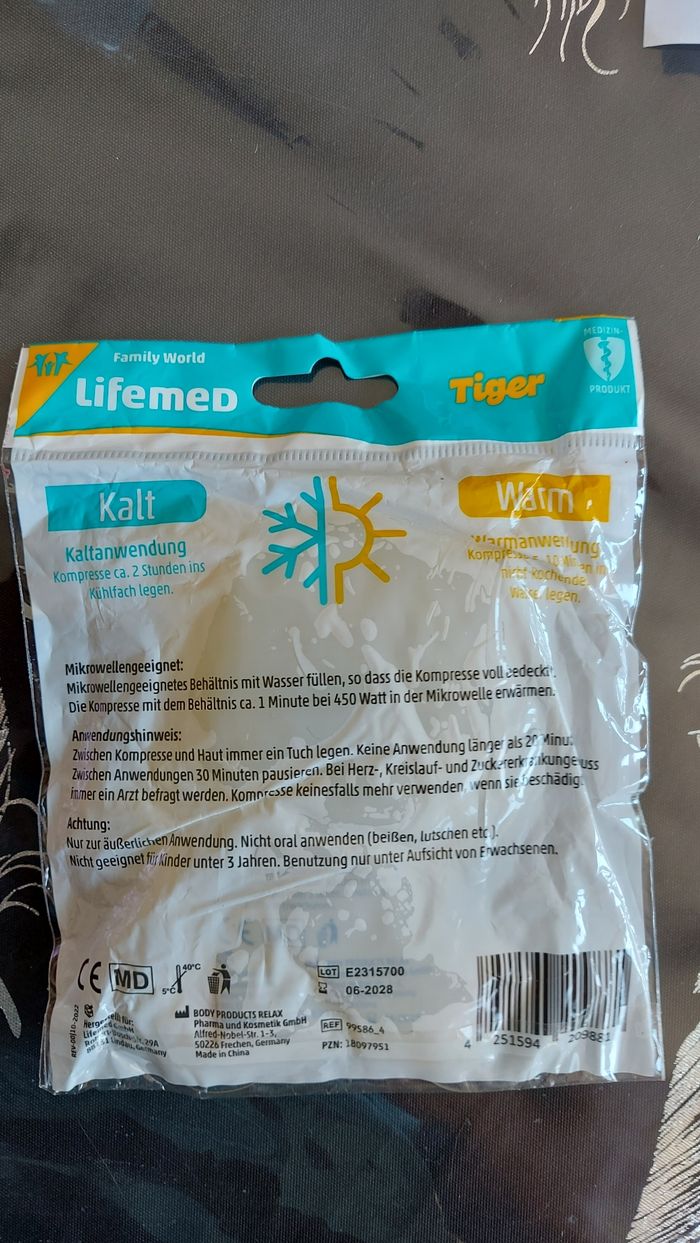 Compresse chaude ou froide, pour enfant, forme de tigre Lifemed Ht 12 x L 8 cm