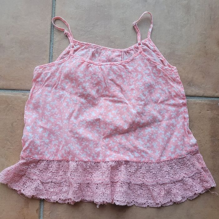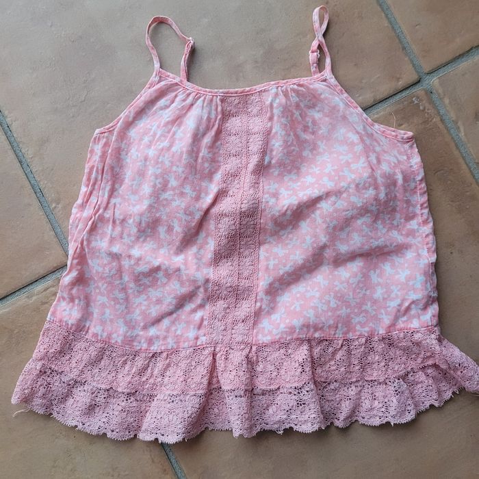 Blouse Zara motif nœuds rose et blanc. Bretelles réglables. Très bon état. Envoi dans la journée en mondial relay ou chronoshop2shop.