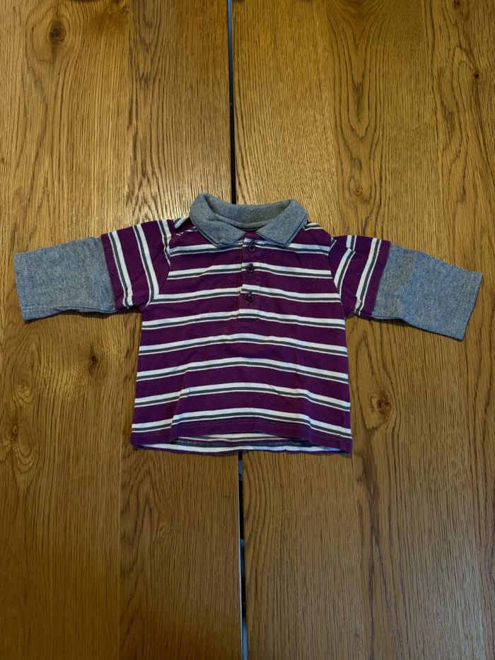 Polo Manches Longues Rayé Violet et Gris Vertbaudet Bébé Garçon 3 Mois Très Bon État Réduction Lot - photo numéro 1