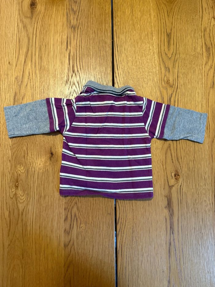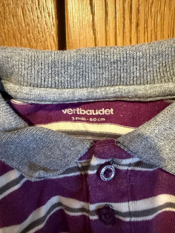 Polo Manches Longues Rayé Violet et Gris Vertbaudet Bébé Garçon 3 Mois Très Bon État Réduction Lot - photo numéro 3