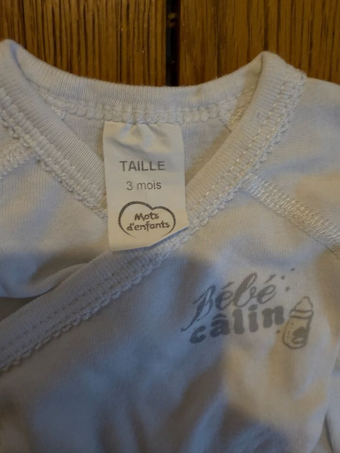 T-shirt Manches Longues Blanc Mot d’Enfant Bébé Garçon 3 Mois Très Bon État – Réduction sur Lot - photo numéro 3
