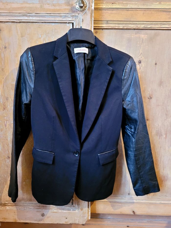 Blazer noir avec manches en simili cuir, très sympa à porter.