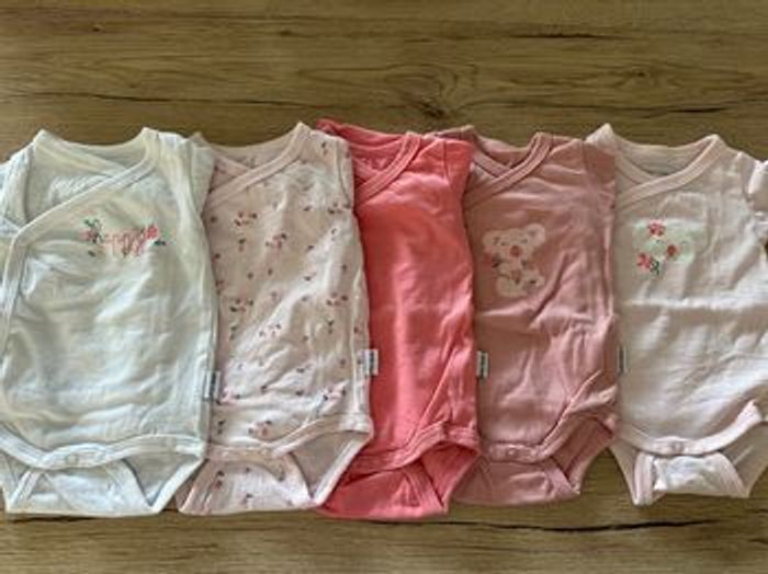 Lot de 5 bodies p’tit bisous. Comme neuf taille 1 mois