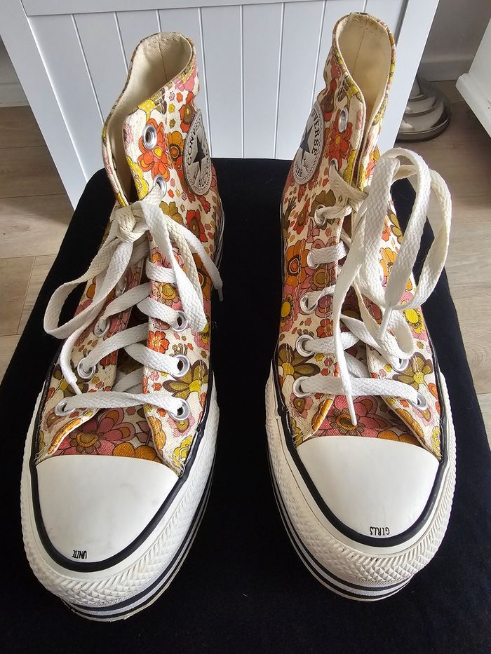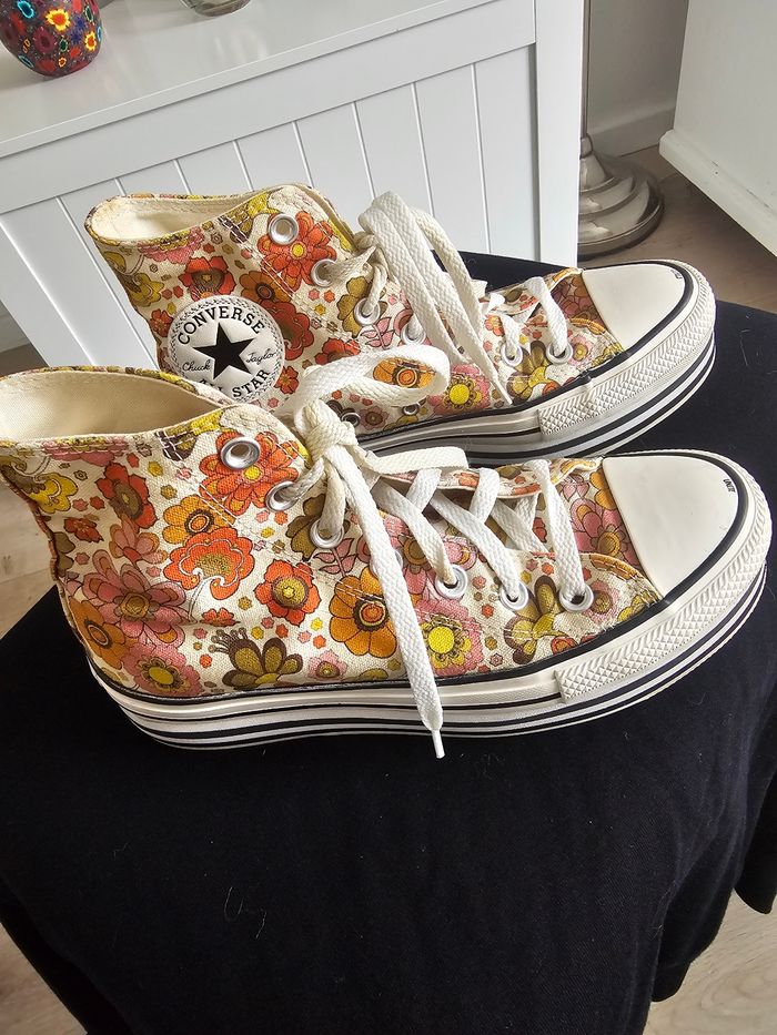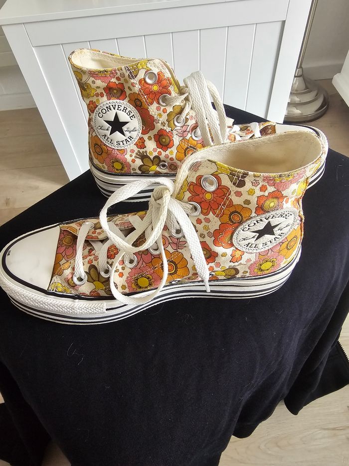 Je vends ces superbes Converse Chuck Taylor All Star montantes, édition spéciale "Girls Unite", en taille 37. Motif floral vintage multicolore très tendance, parfait pour l'été ! Modèle rare, difficile à trouver actuellement. Portées très peu, elles sont en excellent état (voir photos).