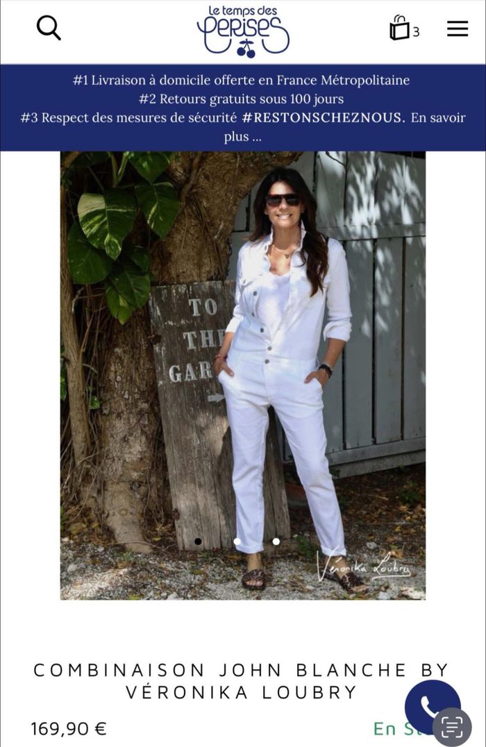 Combinaison Le temps des cerises blanche Veronika Loubry, état, neuf taille M 110 e