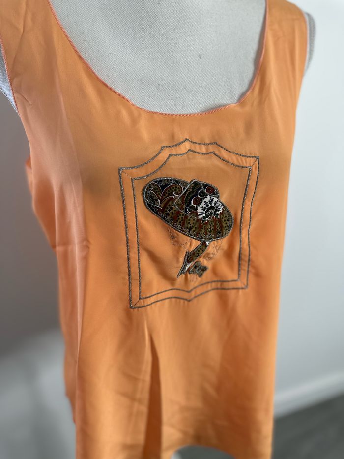 Débardeur en soie orange et argenté Vintage T38 M - photo numéro 3