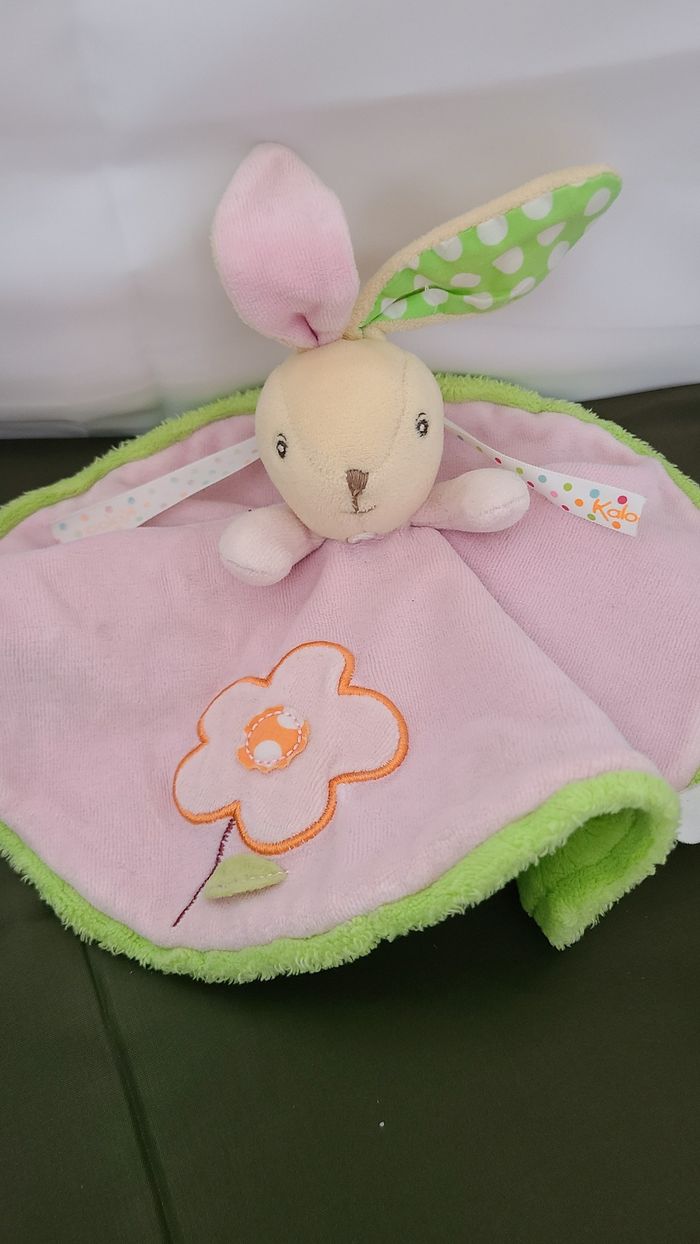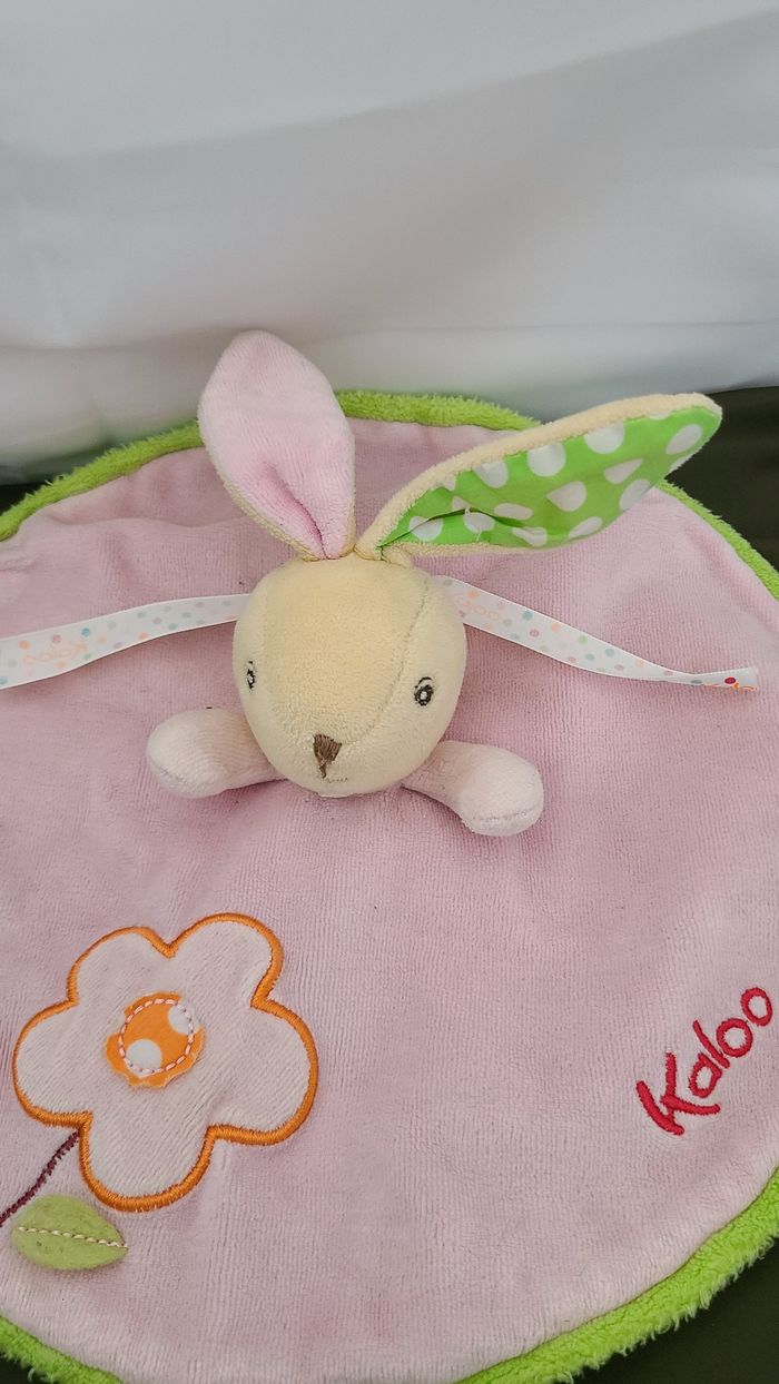 KALOO  DOUDOU LAPIN PLAT ROND ROSE DOS VERT FLEUR - photo numéro 1