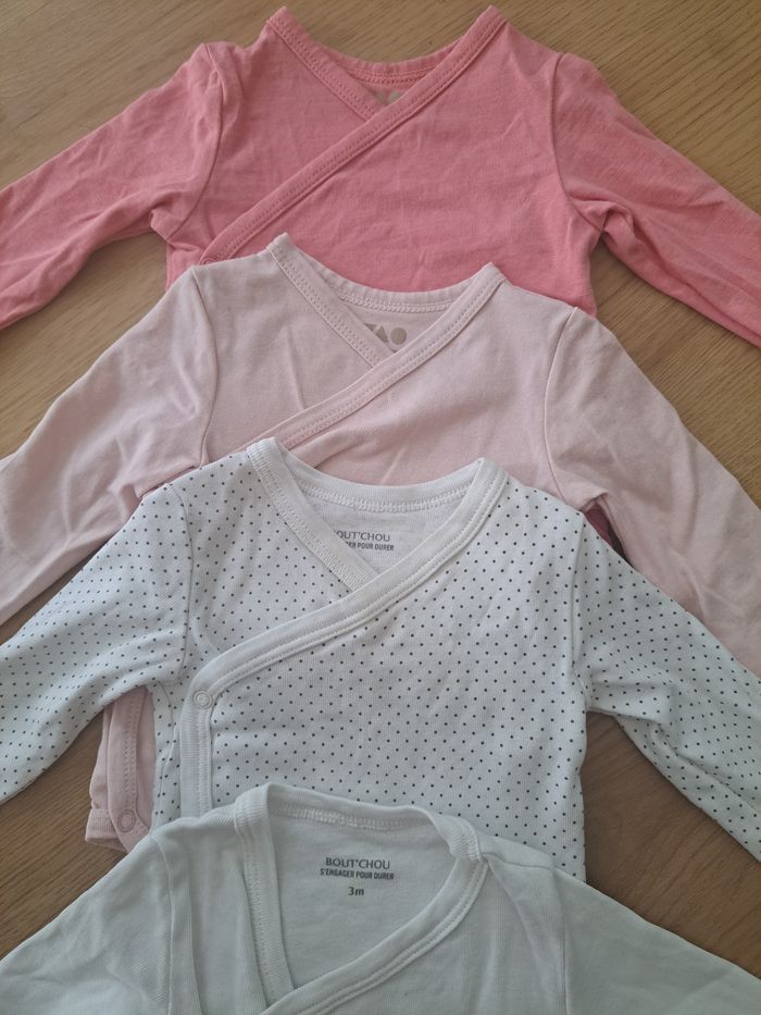 Lot de 4 bodies taille 3 mois Certains jamais portés Certains portés 1 fois ou 2 maximum 2 "bout chou" 2 "tape à l oeil"