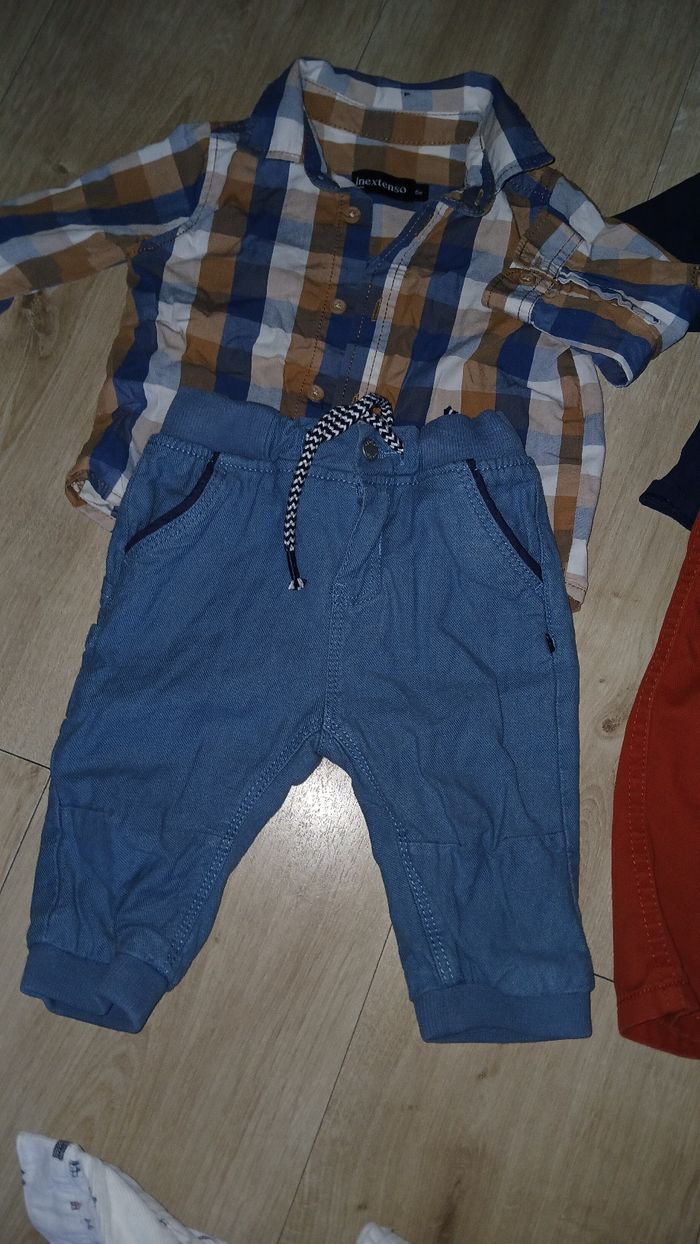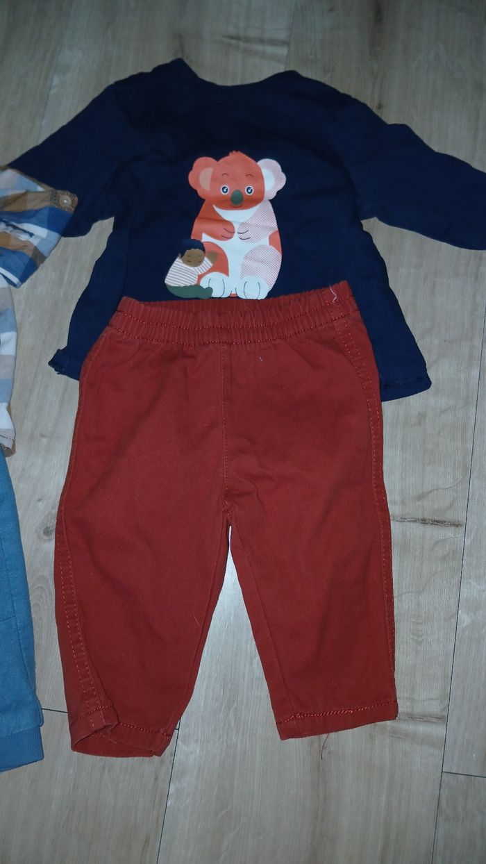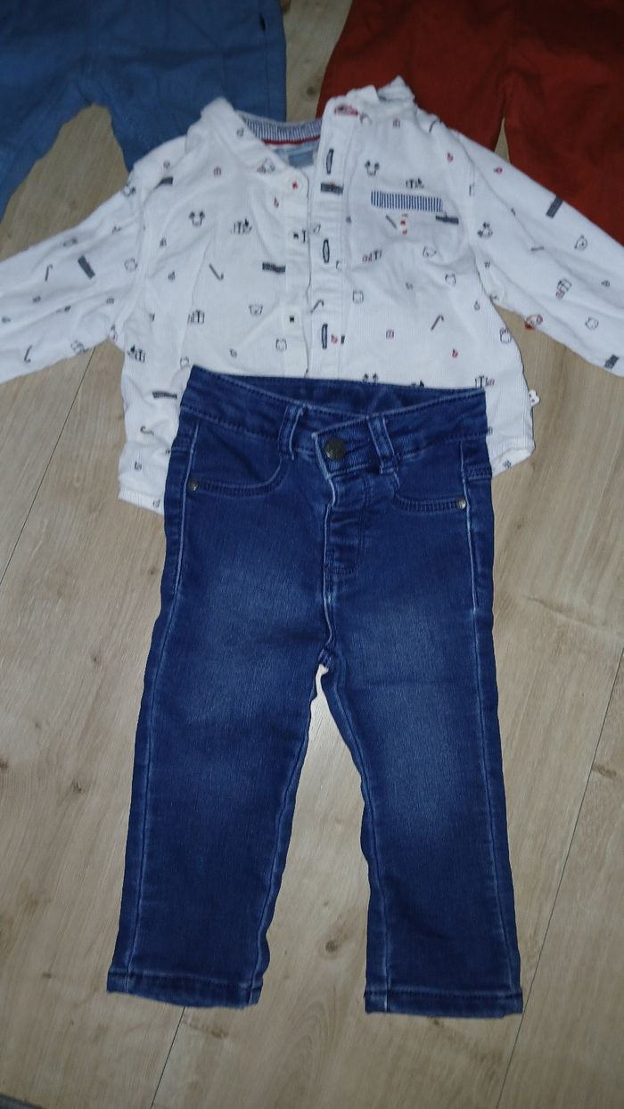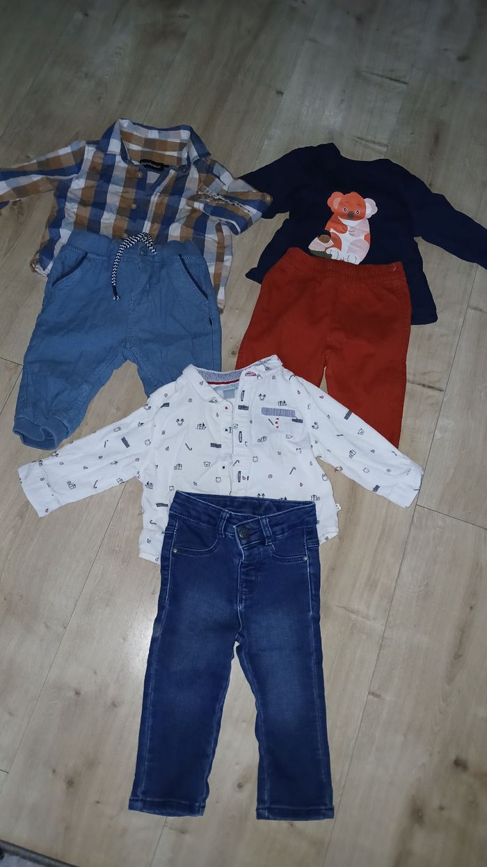 Lot garçon 6mois en très bonne état Un ensemble pantalon rouge et haut bleu manche longue .. Pantalon bleu et sa chemise Un jeans et sa chemise blanc avec motif En très bonne état .. Vêtement propre lavee
