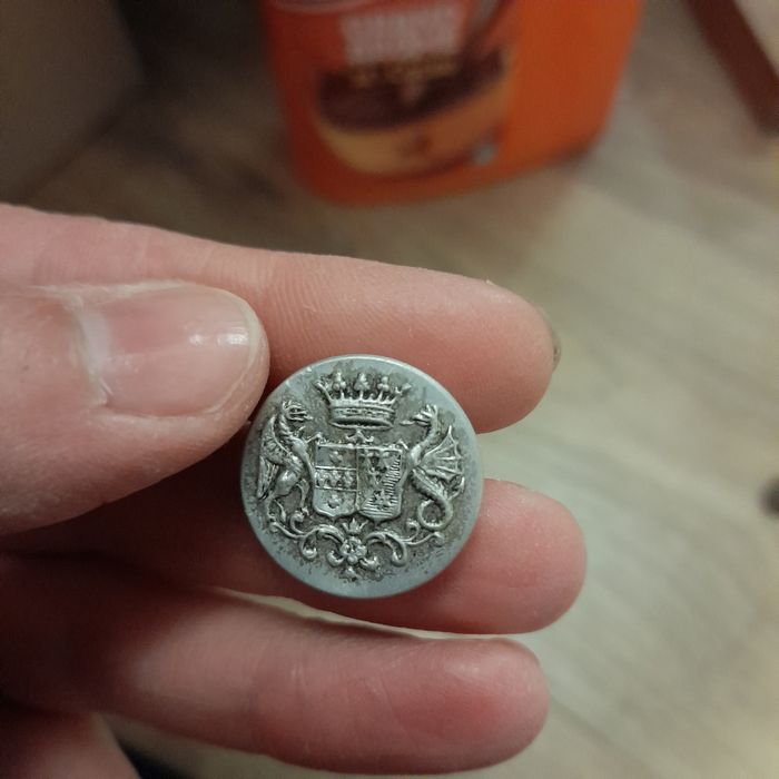 Bouton d'uniforme militaire dragon couronne chasse vénerie.