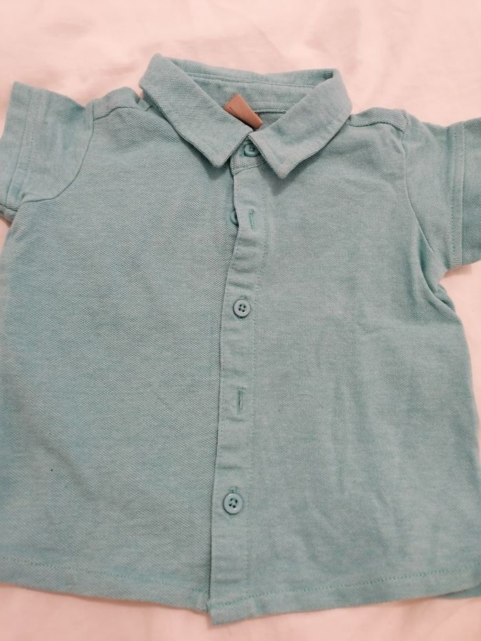 Polo vert qui se ferme avec des boutons devant. Boîte à malice