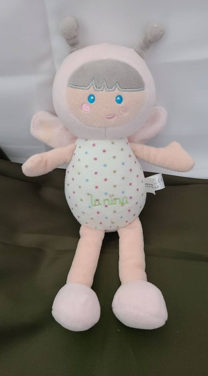 Peluche poupée papillon LA NINA SOFT Diset rose à pois - photo numéro 1
