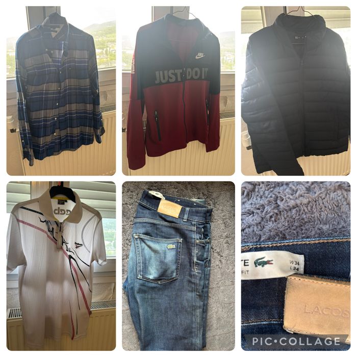 Vêtements de marque à vendre – Très bon état Je vends plusieurs articles de marque (Nike, Lacoste, Celio, etc.) : vestes, chemise, polo, jean taille 34. Tous les vêtements sont en excellent état, très peu portés. Idéal pour un look stylé à petit prix ! Prix à discuter – me contacter en message privé pour les détails.