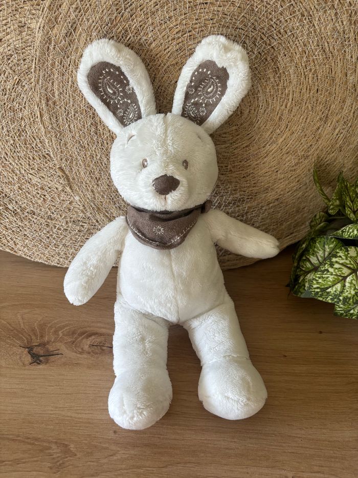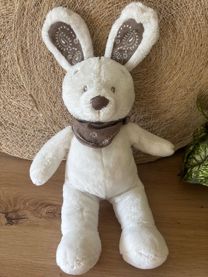État neuf 35 cm avec les oreilles Envoi rapide #doudoulapinblancbandanamarronnicotoy #peluchelapinblancnicotoy