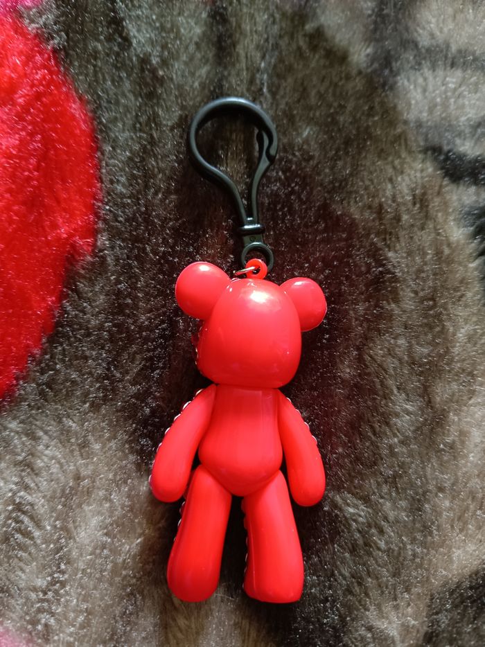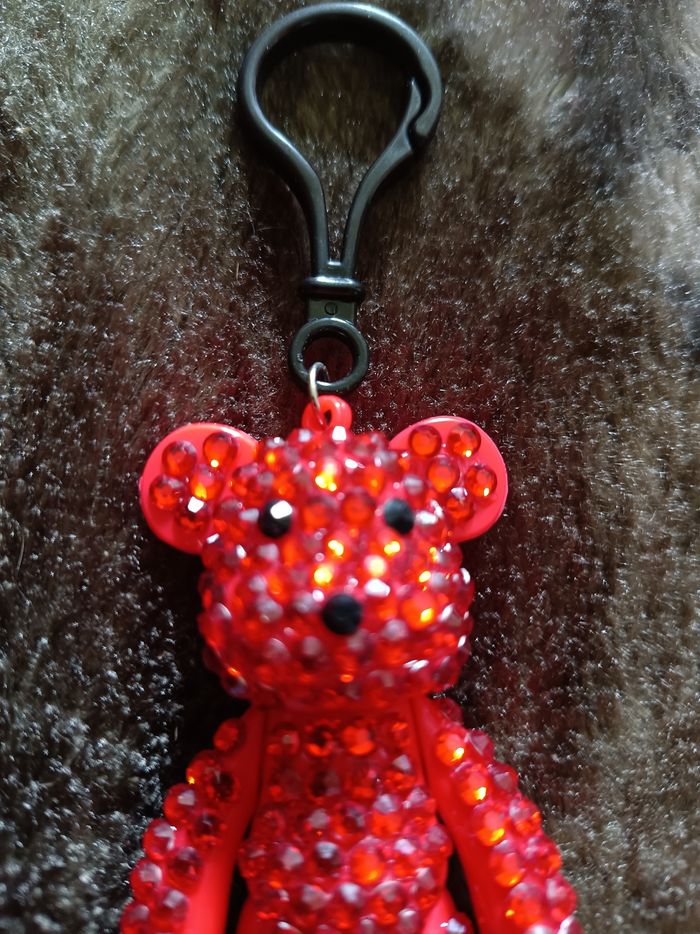 Porte clé rouge a strass nounours en plastique les bras et les jambes bouge