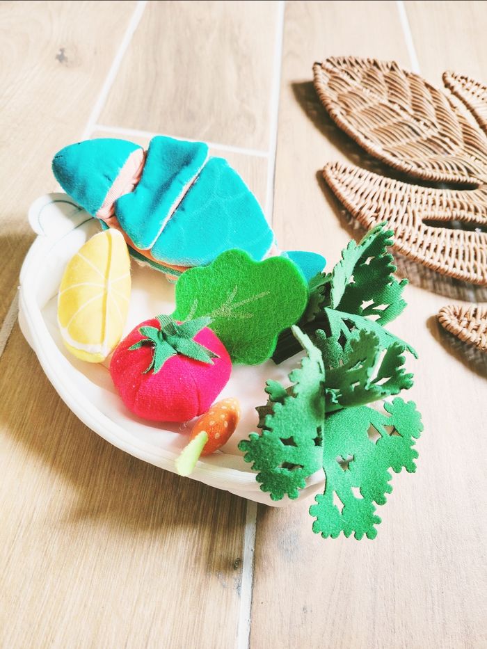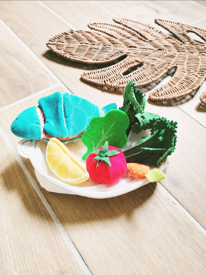 🎀Avec aliments en peluche/tissu : tomate ,poisson à scratch , citron, brocolis. . ...