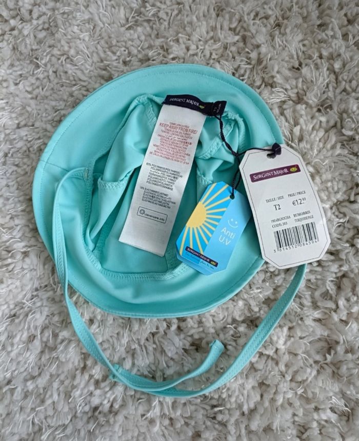 Mes autres chapeau pour enfants sont disponibles ici : #chaleuragenisecoiff Chapeau anti UV pour enfant Taille : T2, 45cm Matière : 82% polyamide et 18% élasthanne Couleur : turquoise pale Marque : sergent major État : neuf Envoie sous 48h N'hésite pas à t'abonner à ma page. Je poste régulièrement des nouveaux articles tu trouveras peut-être des pépites 😉. #chapeau #chapeauantiuv #chaleuragenisecoiff #3moisagenisecoiff #6moisagenisecoiff #chapeauagenisecoiff