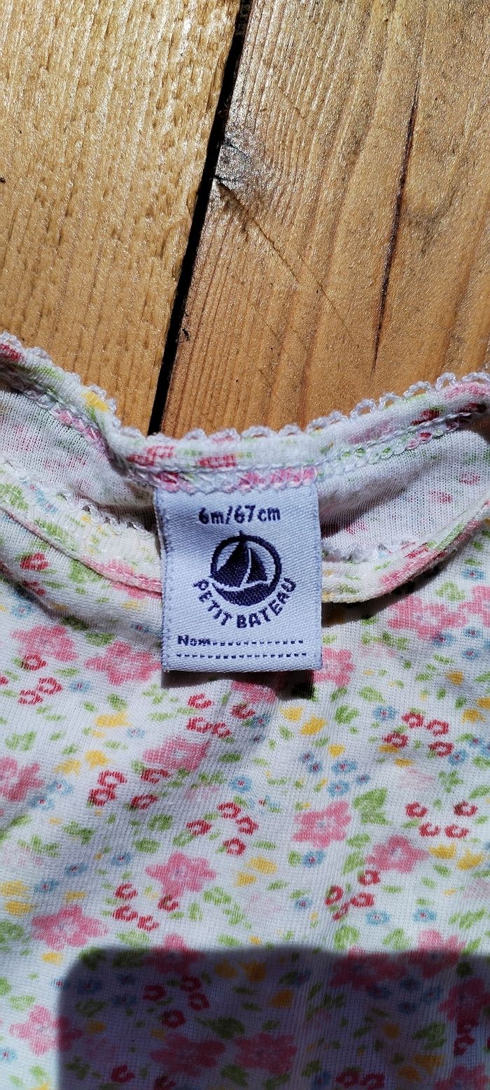 Body blanc fleurie à manches courtes pour fille. Marque Petit Bateau. Taille 6 mois. Comme neuf. Que mondial relais ou Relais Colis.