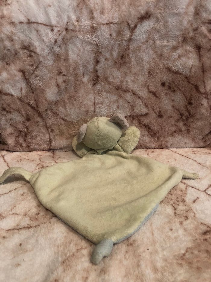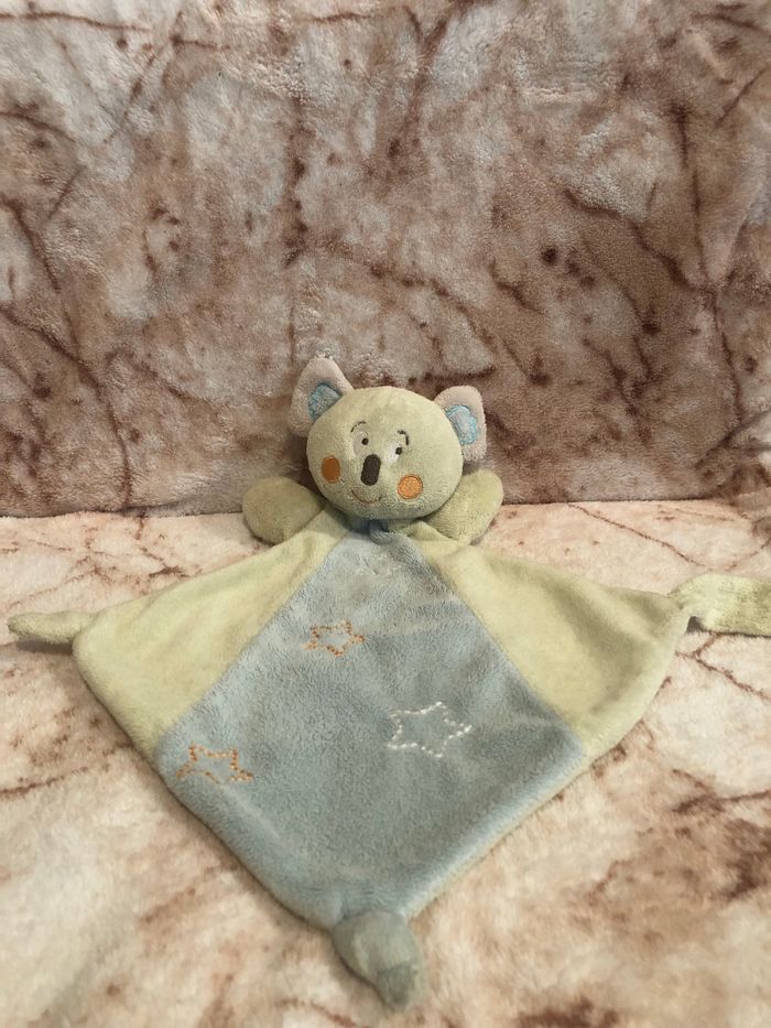 Doudou plat koala vert et bleu Dos uni vert Des étoiles en broderie Kimbaloo Occasion en très bon état ( étiquette coupée) Vous achetez le doudou que vous voyez sur la photo