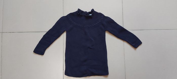 .Robe pull manche longue Marine effet pailleté Fermeture par bouton dans le dos Taille 3 ans #carineddivetementfilletroisans