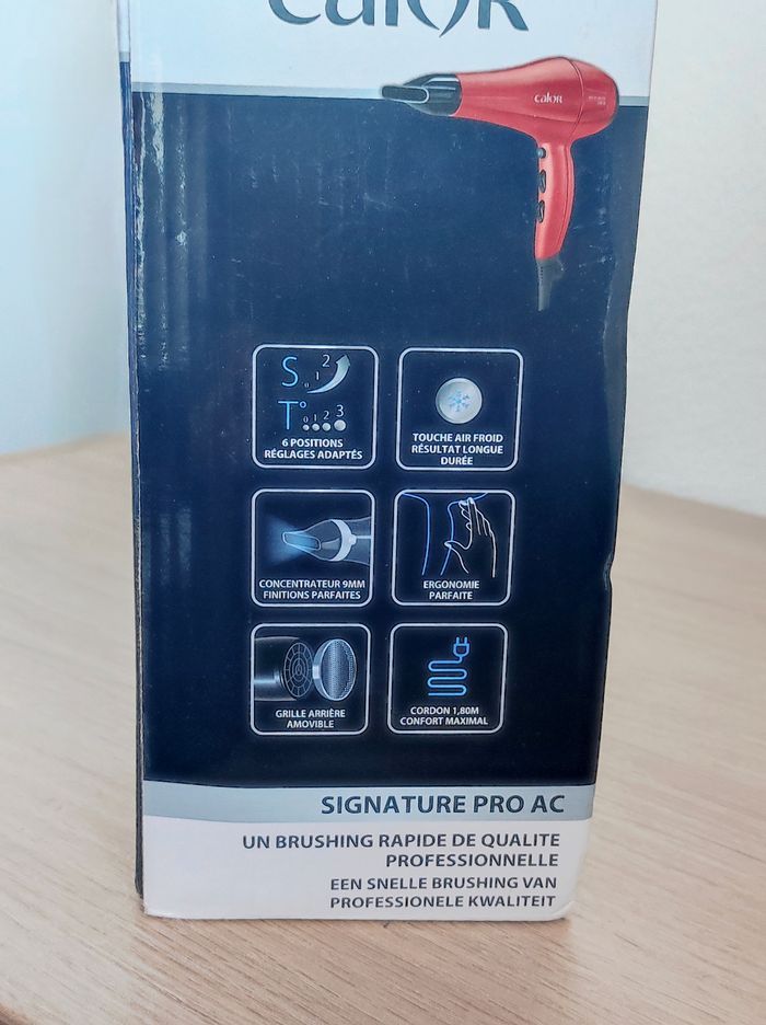 🗂️ 𝗖𝗮𝘁𝗲́𝗴𝗼𝗿𝗶𝗲 : #flocotech #flocobeaute 🏷️ 𝗠𝗮𝗿𝗾𝘂𝗲 : Calor 🎨 𝗖𝗼𝗹𝗼𝗿𝗶𝘀 : Rouge, noir 🧵 𝗖𝗼𝗺𝗽𝗼𝘀𝗶𝘁𝗶𝗼𝗻 : 🌍 𝗣𝗮𝘆𝘀 𝗱𝗲 𝗙𝗮𝗯𝗿𝗶𝗰𝗮𝘁𝗶𝗼𝗻 : ❌ 𝗗𝗲́𝗳𝗮𝘂𝘁(𝘀) : 📜 𝗗𝗲́𝘁𝗮𝗶𝗹𝘀 𝘀𝘂𝗽𝗽𝗹𝗲́𝗺𝗲𝗻𝘁𝗮𝗶𝗿𝗲𝘀 : 2100 w - Nombre de vitesses : 2 - Nombre de position de chauffe : 3 - Fonction "Air frais" Fonction Ionique UN BRUSHING RAPIDE DE QUALITE PROFESSIONNELLE Signature Pro AC offre des résultats de qualité professionnelle de manière rapide et efficace tout en apportant aux cheveux une brillance éclatante. BRILLANCE SUPRÊME ET HAUTE PERFORMANCE DURABLE Signature Pro AC offre un niveau de performance exceptionnel pour des résultats professionnels et une brillance éclatante. Ce sèche-cheveux haute performance émet des millions d'ions qui concentrent les molécules d'eau sur les cheveux, réduisant l'électricité statique et les frisottis, pour des cheveux lisses, faciles à coiffer et d'une brillance éclatante. Le moteur AC de qualité professionnel garantit une longue durée de vie et la vitesse élevée de l'air (jusqu'à 100 km/h) offre des résultats d'une grande efficacité. Signature Pro AC offre un grand choix de styles de coiffure grâce à son concentrateur fin de 6 mm haute précision et son diffuseur qui donne un volume naturel aux cheveux bouclés. Les positions de séchage personnalisables permettent un séchage parfait, avec notamment la touche air froid pour fixer la coiffure, pour des résultats longue durée. ෴﹏෴﹏෴﹏෴﹏෴﹏෴ 🛍️ 𝐷𝑟𝑒𝑠𝑠𝑖𝑛𝑔 𝑑𝑒 : #floconeko