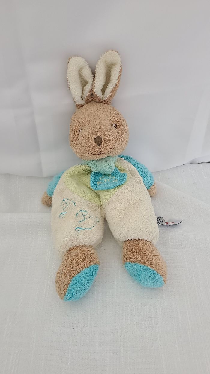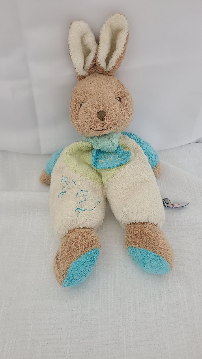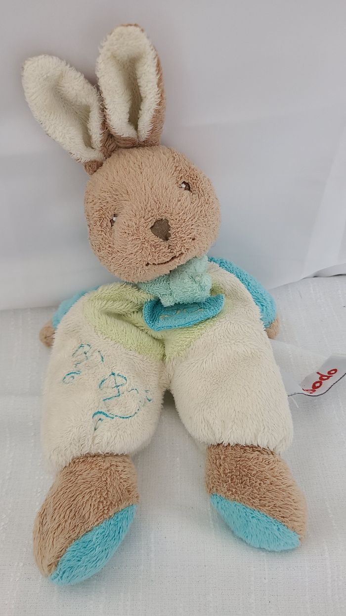 Doudou lapin bleu vert blanc TOODO - photo numéro 1