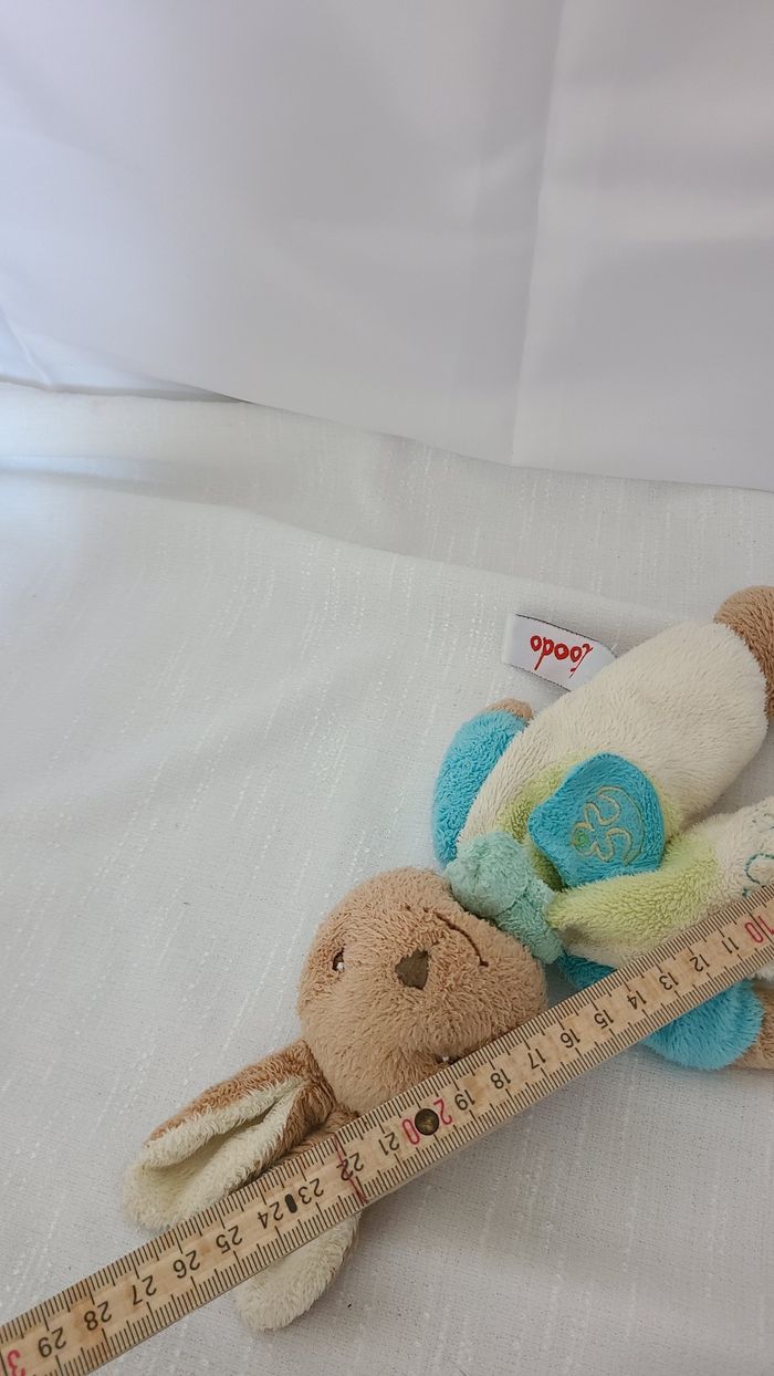 Doudou lapin bleu vert blanc TOODO - photo numéro 5