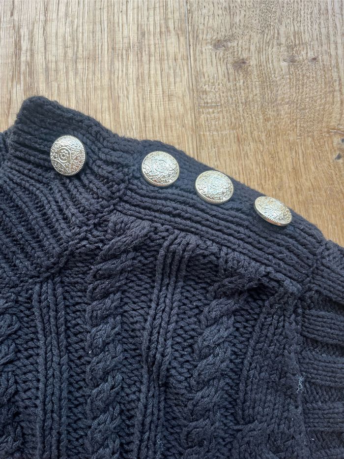 Joli pull sans manche tressé noir à boutons dorés - photo numéro 3