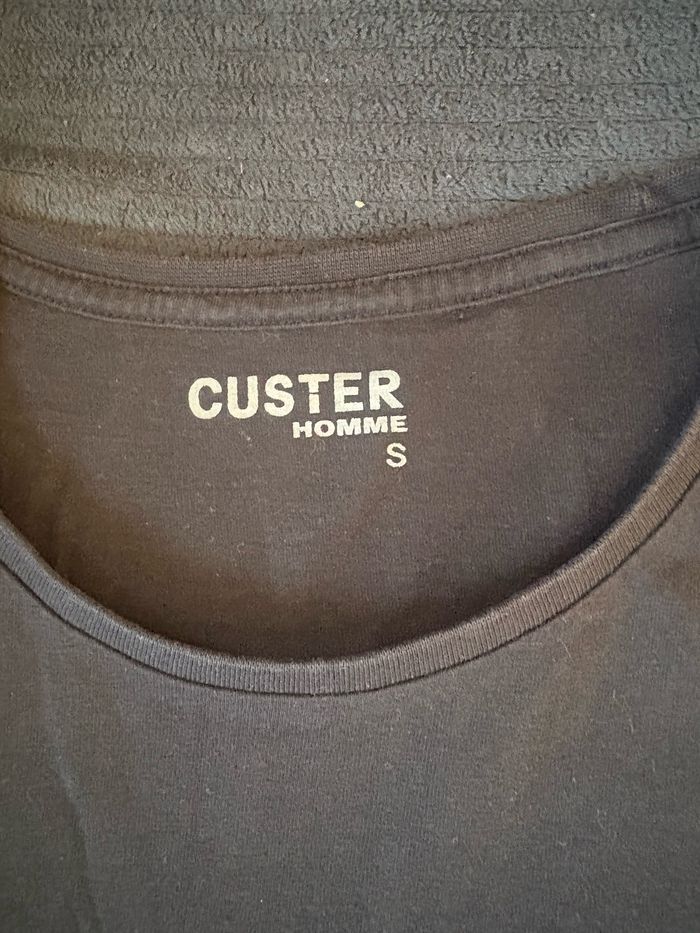 Bonjour bonsoir je vend ce t-shirt pour homme Couleur noir avec motif Taille S Marque Custer En très bon état Envoie rapide et soigner