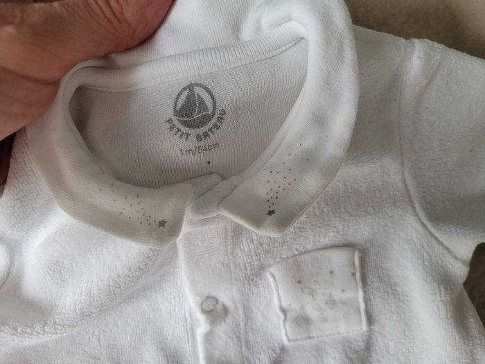 Pyjama sergent major 1 mois 54 cm Blanc, en velours En très bon état Mixte