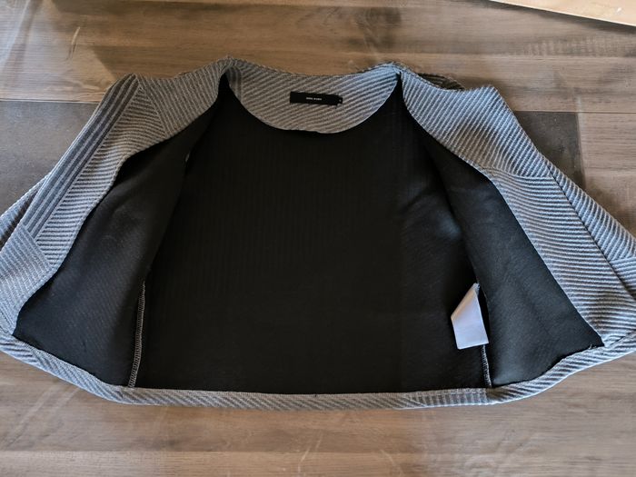 Blazer à manches longues Marque Vero Moda Taille M, 38 • Coloris gris • Rayures froncées • Sans fermeture • Stretch Largeur épaule à épaule non étirée : 40 cm Largeur épaule à épaule étirée au maximum : 52 cm Largeur aisselle à aisselle non étirée : 49 cm Largeur aisselle à aisselle étirée au maximum : 67 cm Longueur manche : 61 cm Longueur totale : 52 cm Longueur aisselle : 30 cm En très bon état #evelyne_taille_38