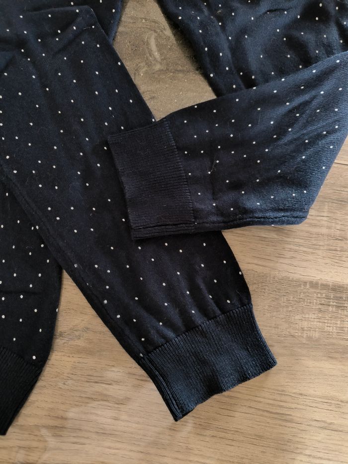 Pull à manches longues Marque Kiabi Taille M, 38-40 • Coloris marine, blanc • Imprimés pois • Col V • Tissu fin • Stretch Largeur épaule à épaule non étirée : 40 cm Largeur épaule à épaule étirée au maximum : 60 cm Largeur aisselle à aisselle non étirée : 47 cm Largeur aisselle à aisselle étirée au maximum : 72 cm Longueur manche : 61 cm Longueur totale : 62 cm Longueur aisselle : 45 cm En très bon état #evelyne_taille_38 #evelyne_taille_40
