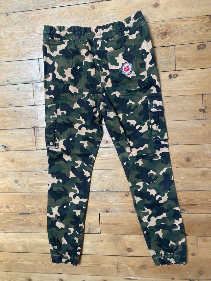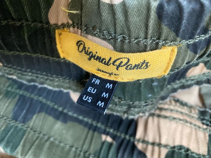 Jeans cargo camouflage jeggpant Taille M ( taille grand convient mieux pour un 40, c'est pour ça qu'il est resté en état neuf) À noter qu'une femme qui met du 42 peut aussi le mettre,il sera près du corps mais reste confortable grâce à l élasthane Jennyfer La ceinture mesure à plat 41,2 cm, va jusqu'à 53 cm en tirant Longueur milieu devant où se trouve généralement la braguette 28 cm Longueur entre jambe 70,5 cm Largeur à plat bas des jambes élastique sans tirer 12,5 cm, 20 cm en tirant