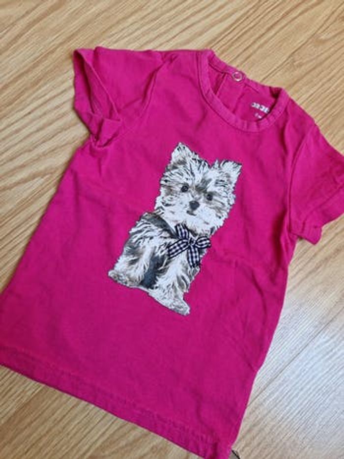 Bonjour, je vends ce haut rose avec un imprimé chien. En très bon état