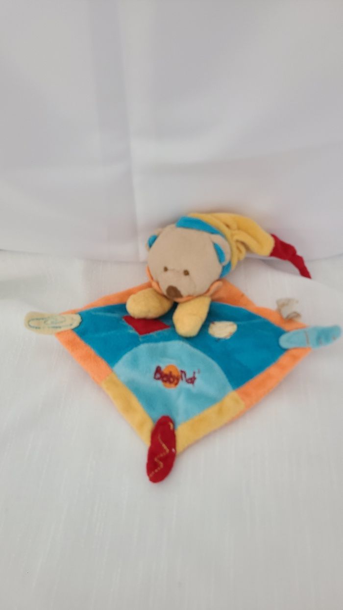 Doudou Ours Plat Bleu Jaune Orange Losange BABY NAT’ - photo numéro 1