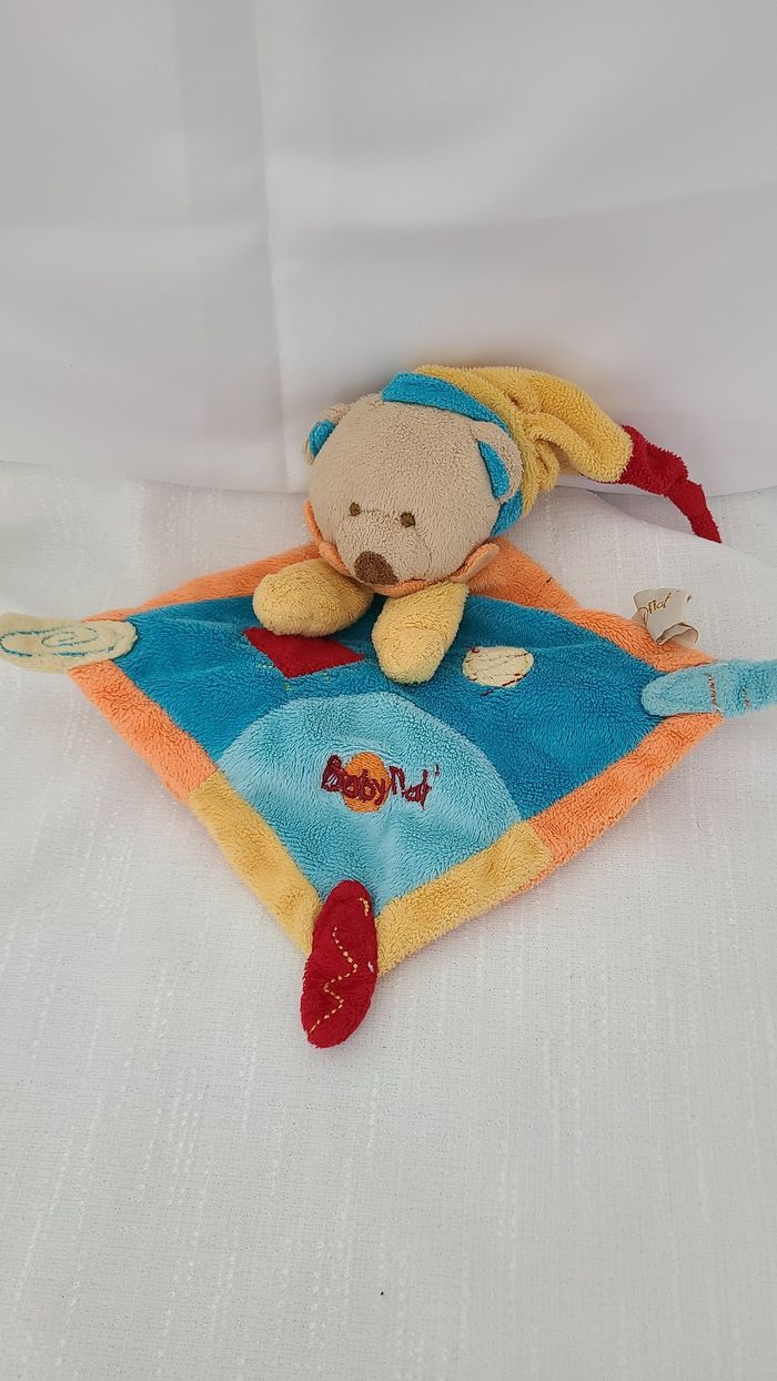 Doudou Ours Plat Bleu Jaune Orange Losange BABY NAT’ - photo numéro 4