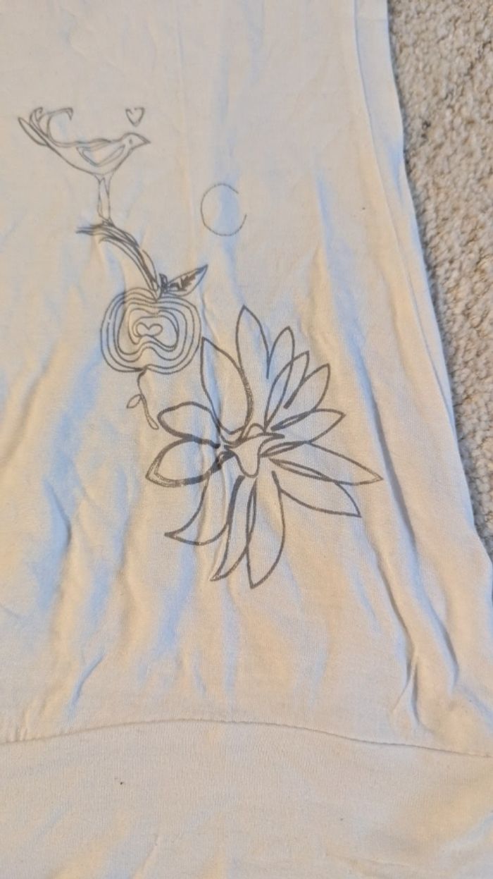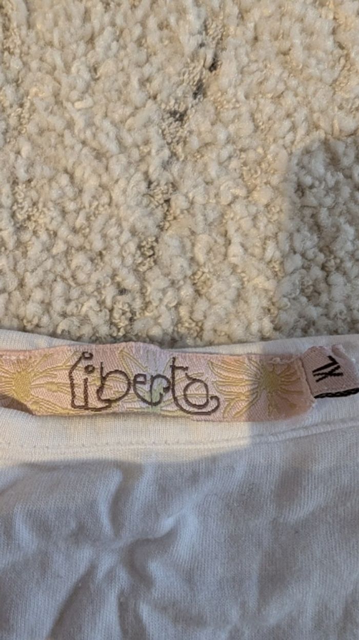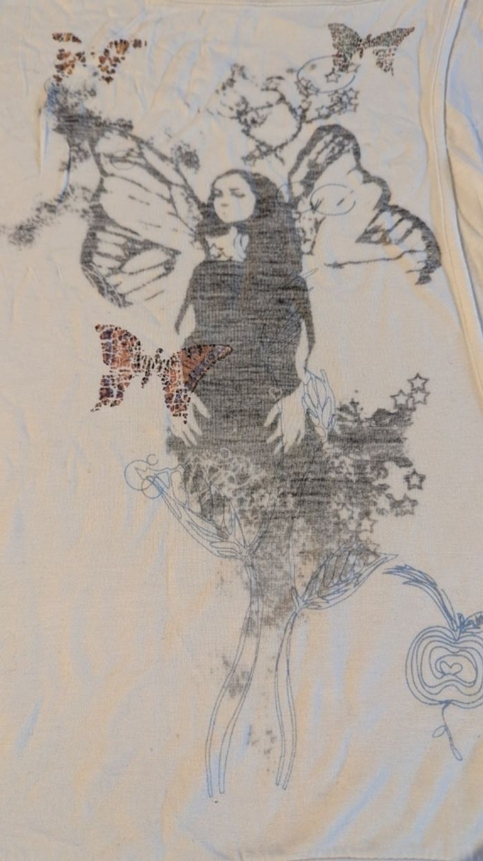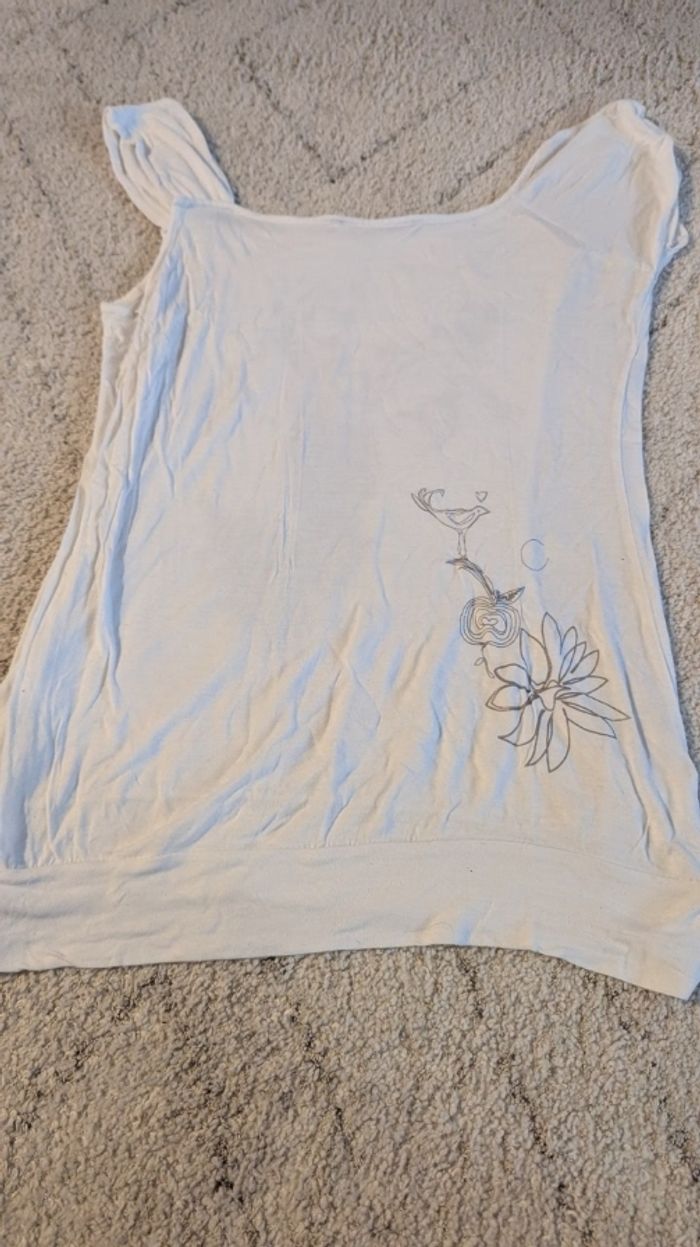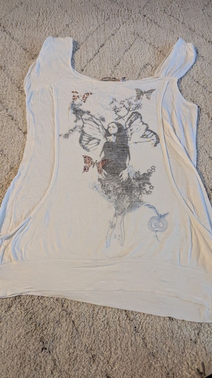 Débardeur blanc Liberto en viscose. Impression fée à l'avant et fleur dans le dos