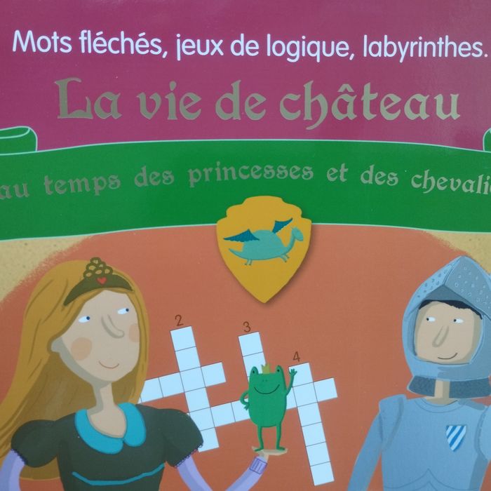 Livre La vie de château au temps des princesses et chevaliers. Jeux de logique, mots fléchés, labyrinthes.. et ses solutions en fin de livre. Neuf.